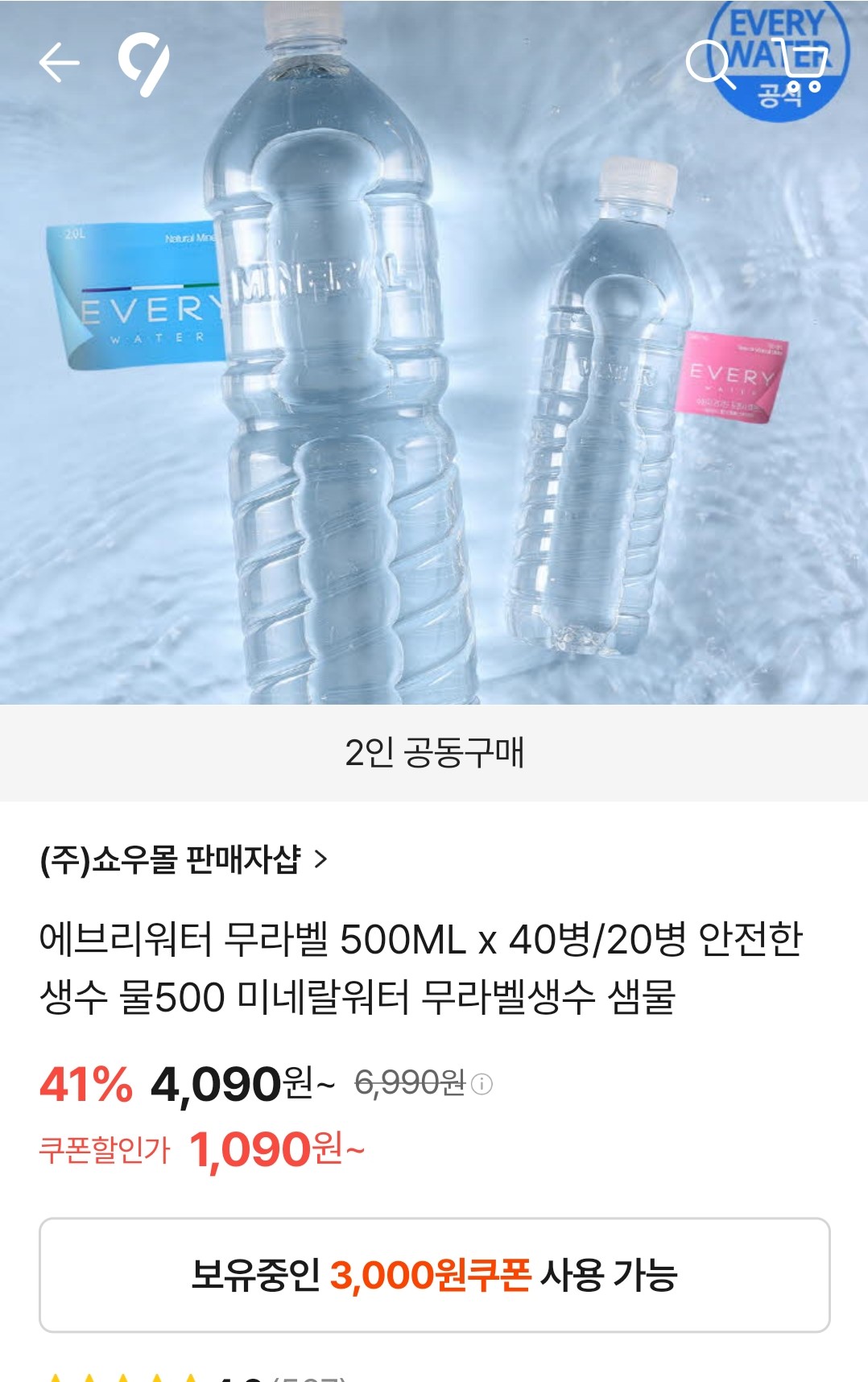 그런데 여기 사이트들을 알게된 뒤로는 귀찮아도 매번 탈퇴후 한달뒤 재가입해서 신규 3000원 쿠폰받고 1090원에 500ml20병을 구매하고 있답니다